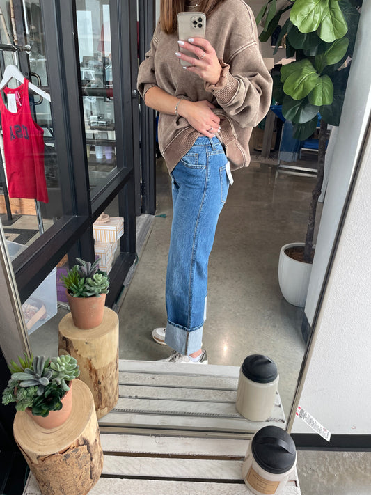 Cuffed Wide Leg Denim