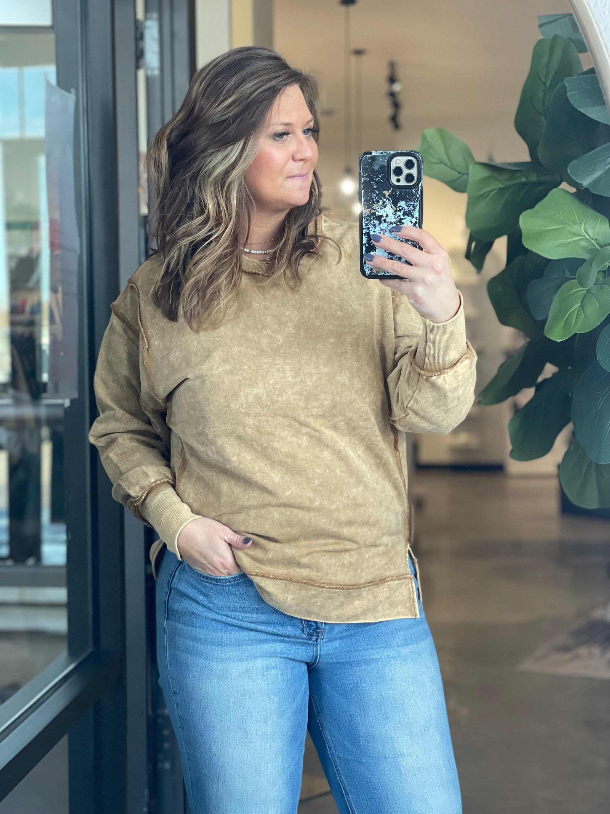 Acid Wash Exposed Seam Sweatshirt