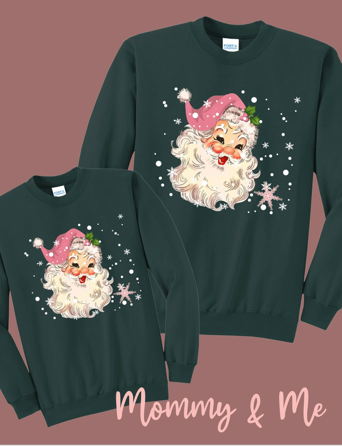 Green Vintage Santa Crew - Mommy & Me