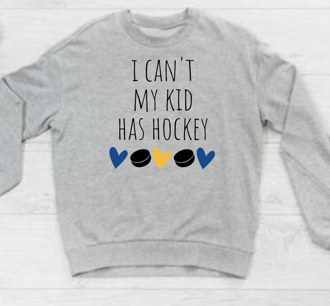 I Can't My Kid Has Hockey Crew - Gold/Blue