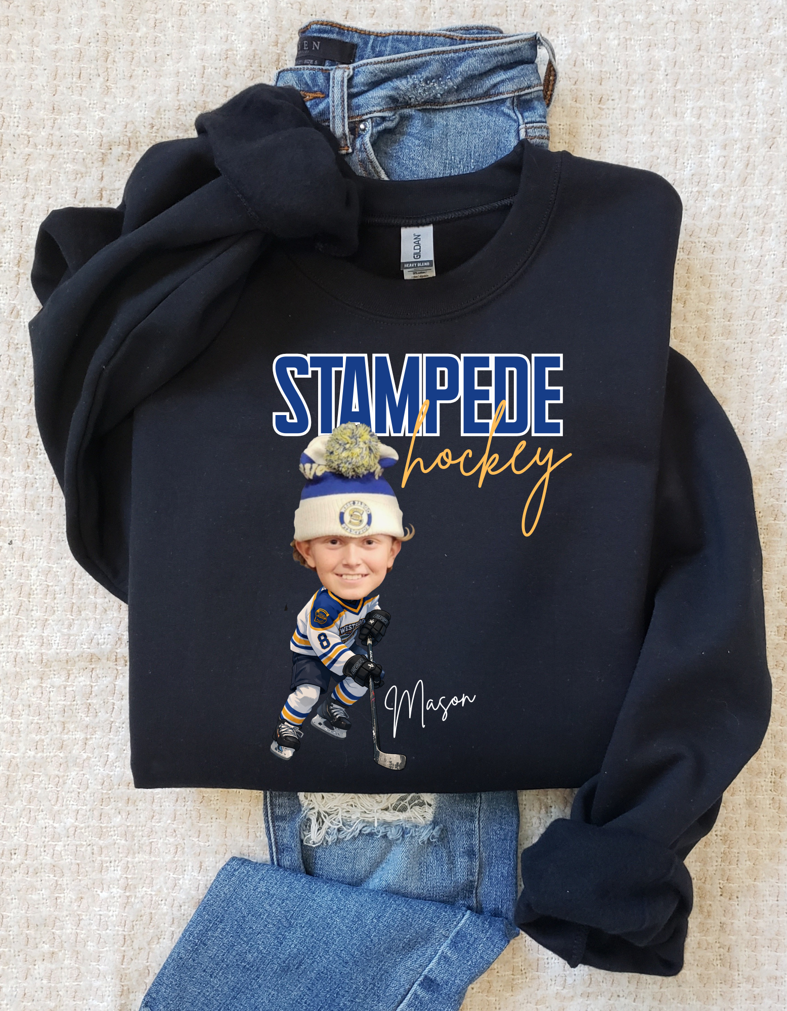 Upload your child's photo and leave a note at checkout with player name and number.